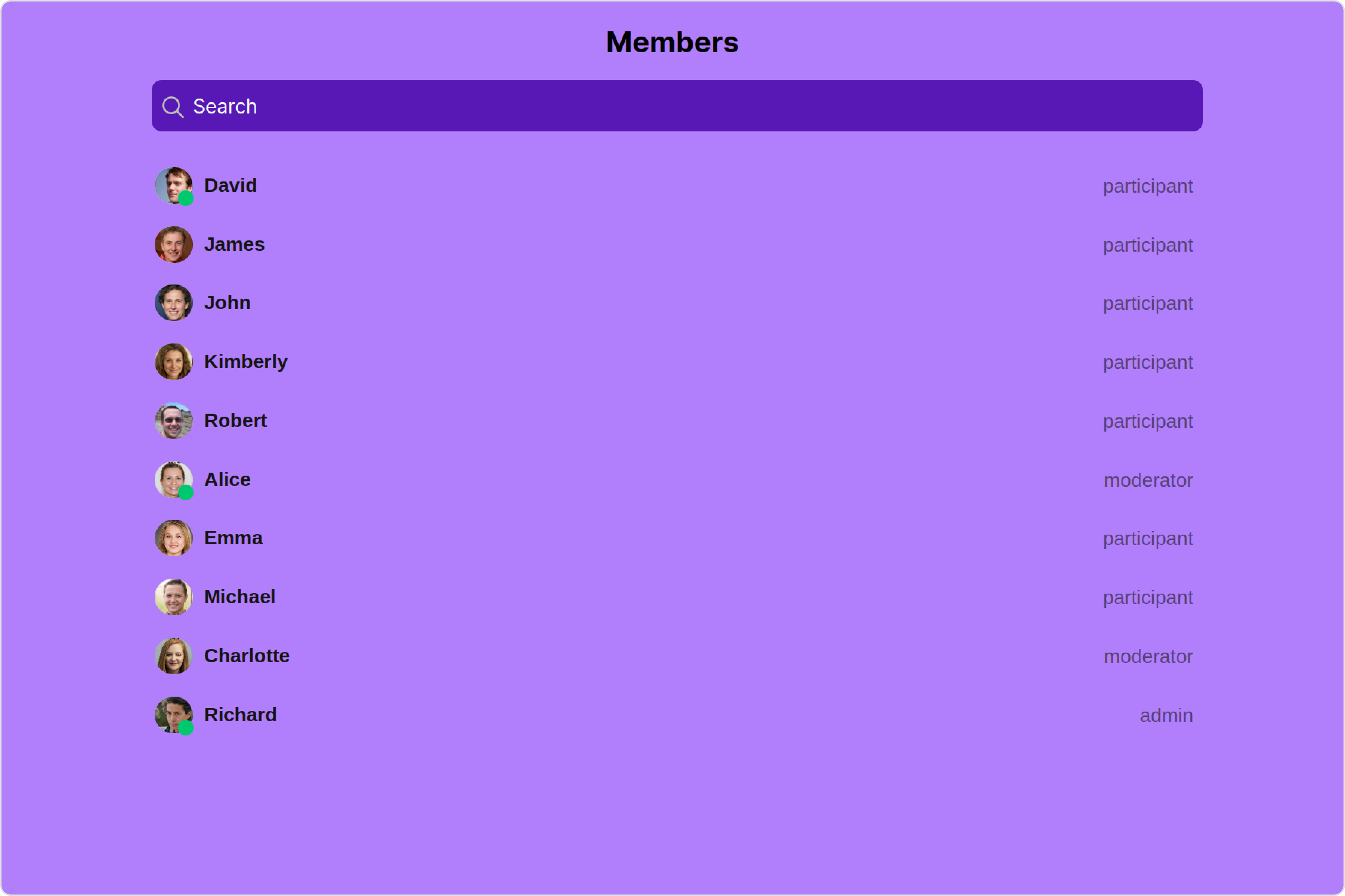 To fit your app’s design requirements, you can customize the appearance of the Group Members component. We provide exposed methods that allow you to modify the experience and behavior according to your specific needs.Style